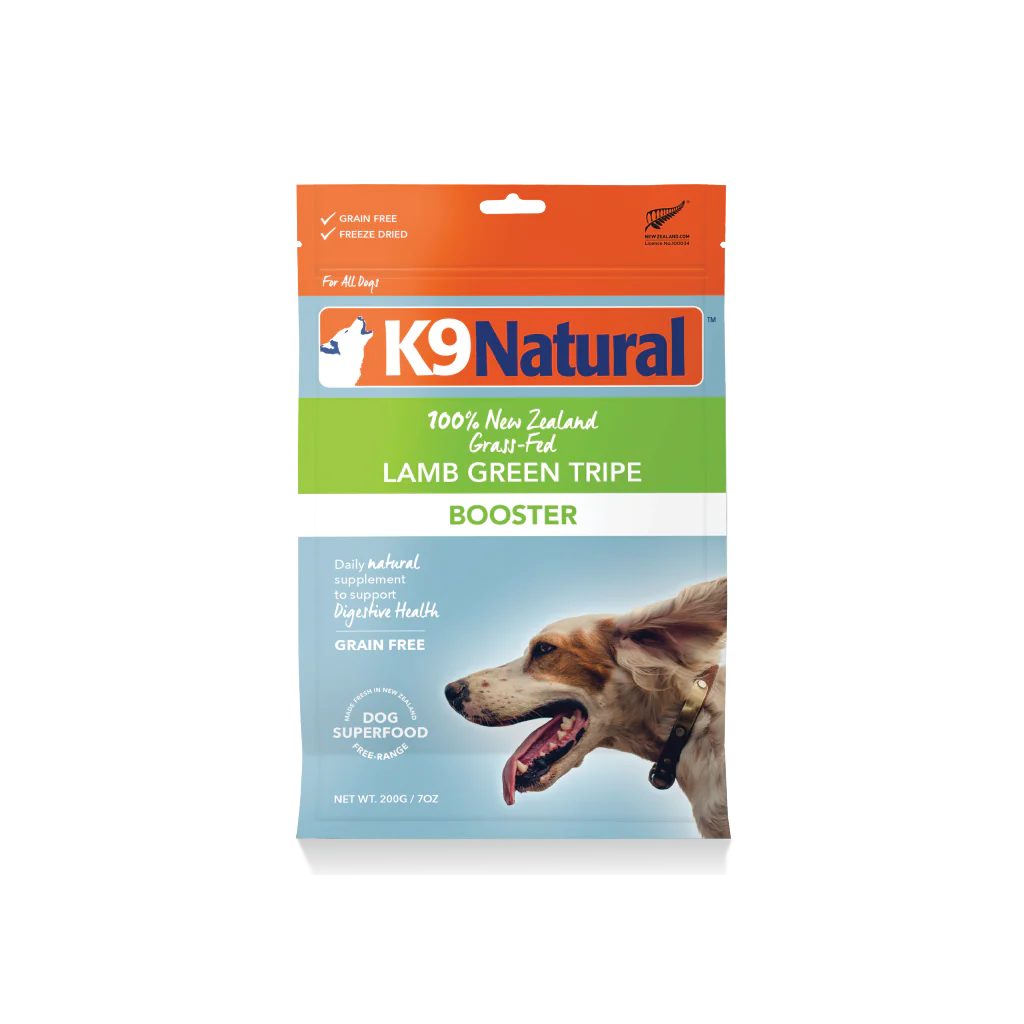 Hailed as a highly palatable, natural superfood, Green Tripe is a fantastic supplement containing an abundance of vital nutrients for your dog. Sourcing only the highest quality New Zealand grass-fed, free-range Lamb Green Tripe, K9 Natural Green Tripe Boosters aid in healthy digestion, nourishing skin & coat, assisting immune response and overall health and well-being.