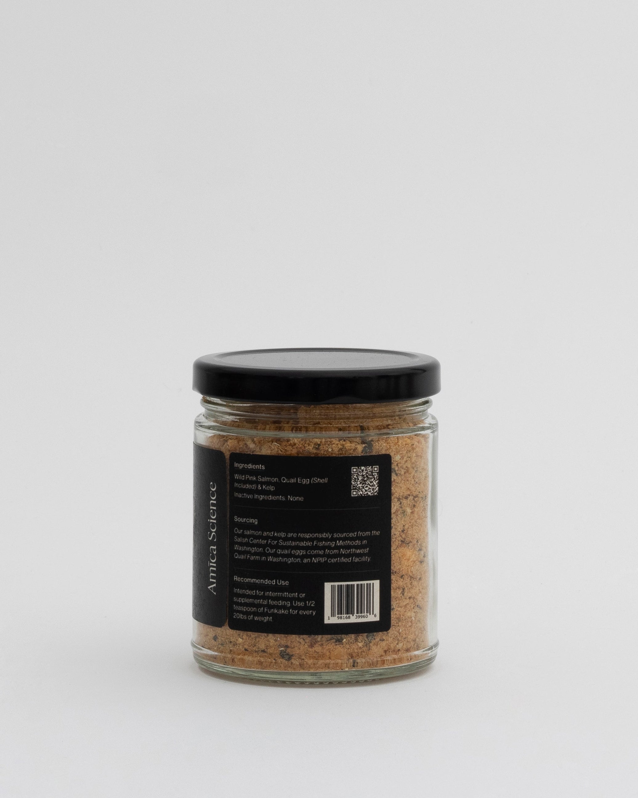 Amica Science's salmon & kelp are responsibly sourced from the Salish Center For Sustainable Fishing Methods in Washington. Our quail eggs come from Northwest Quail farm in Washington, an NPIP certified facility.